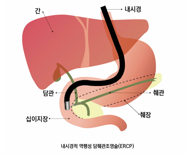 ERCP는 내시경을 이용하여 췌장과 담도의 구조를 관찰하고, 췌장암의 여부를 확인하는 검사입니다.