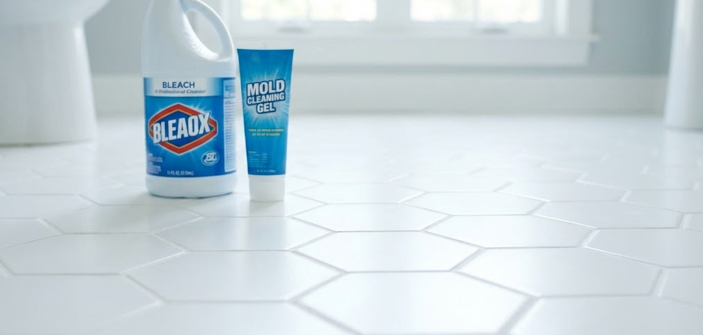 - 바닥 타일 전체가 곰팡이로 뒤덮였다면? 👉 락스 + 물 청소 (넓은 면적 가성비)