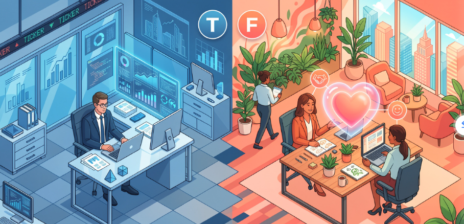 MBTI 성격 유형 지표 중 직장 내에서 가장 잦은 오해와 갈등을 불러일으키는 요소는 바로 의사결정 방식인 T(사고형, Thinking)와 F(감정형, Feeling)의 차이입니다. 성공적인 오피스 라이프를 위해서는 이 두 성향의 근본적인 업무 처리 방식을 이해하는 것이 필수적입니다.